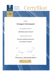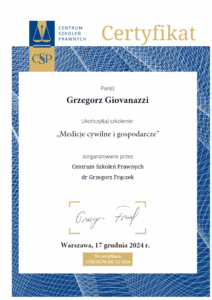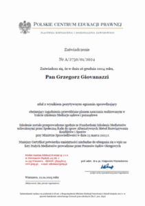 Certyfikowany Mediator - Grzegorz Giovanazzi